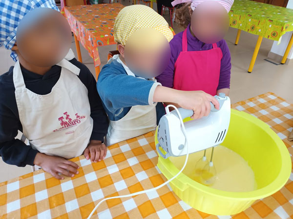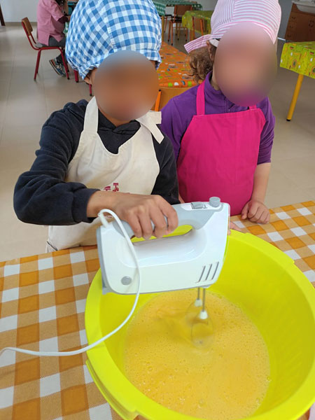 O início da tarde do primeiro dia de férias dos nossos pequeninos e pequeninas foi reservado a uma atividade muito especial que os levou até à cozinha. Já devidamente equipados, com toucas e aventais, prepararam-se para dar forma a umas deliciosas bolinhas de salame! Muitos atentos, observaram todas as fases do processo e, com a devida supervisão, participaram em todas elas, com manifesto orgulho.